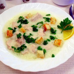 Открыть крышку мультиварки. Одной рукой вливать яично-лимонную смесь, а второй рукой размешивать суп круговыми движениями. Варить еще примерно 2-3 минуты непрерывно размешивая. Суп не должен закипеть, но яичная масса должна слегка загустеть.