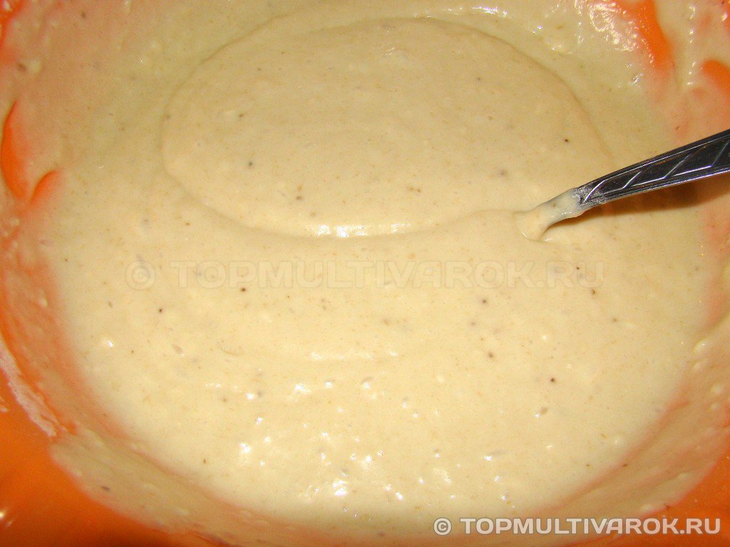 Чашу мультиварки смазать растительным маслом. Вылить тесто и оставить в режиме "Выпечка" на 50 минут.