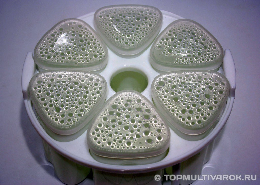 Выставить программу Йогурт (температура приготовления 40С) на 8 часов. Удобно ставить йогурт на ночь. Тогда утром к завтраку будет свежий и вкусный натуральный биойогурт.