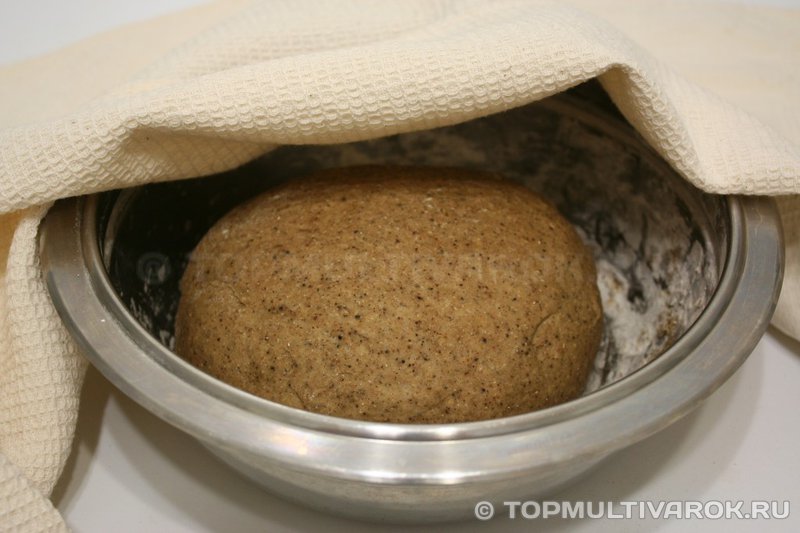 Затем достать хлеб из мультиварки при помощи лотка для приготовления на пару. Перевернуть хлеб поджаристой стороной вверх и выпекать еще пол часа в том же режиме «Выпечка» при 150°С.